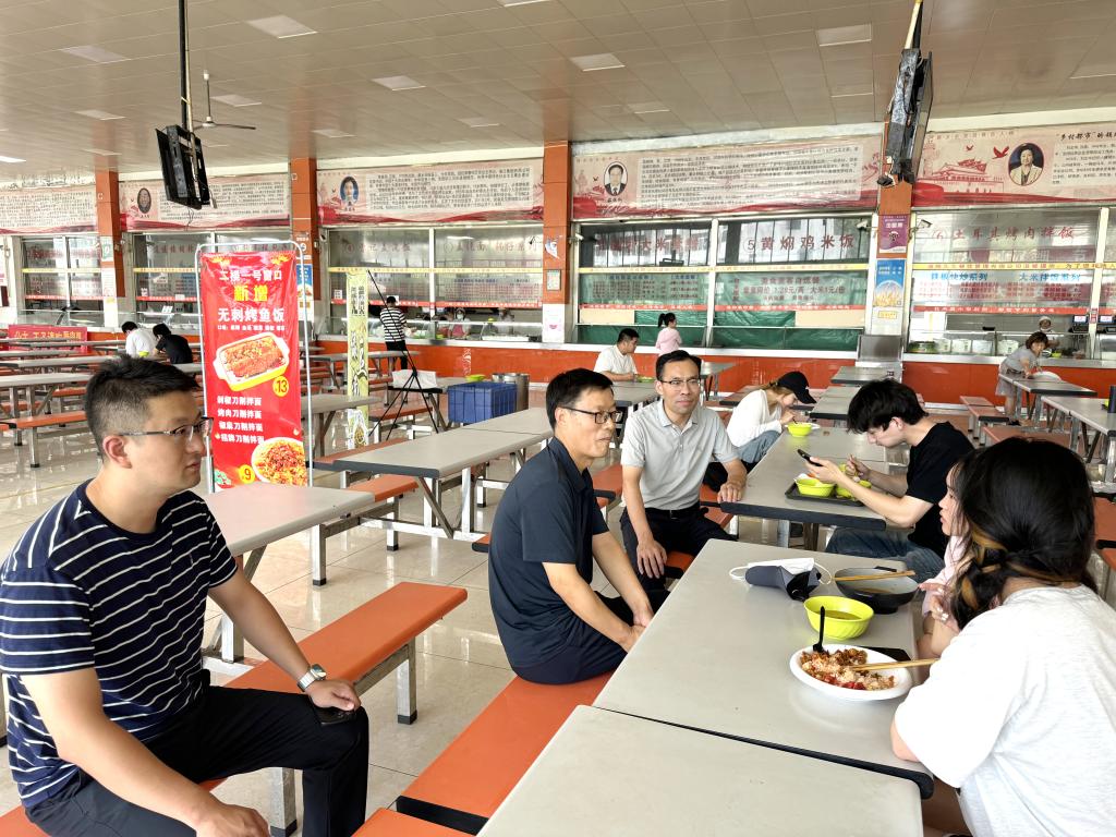 6月27日中午,副校长王洪亮在后勤服务中心相关人员陪同下,深入第一学生餐厅检查食品安全、环境卫生和服务保障情况,并与学生亲切交流、共进午餐。