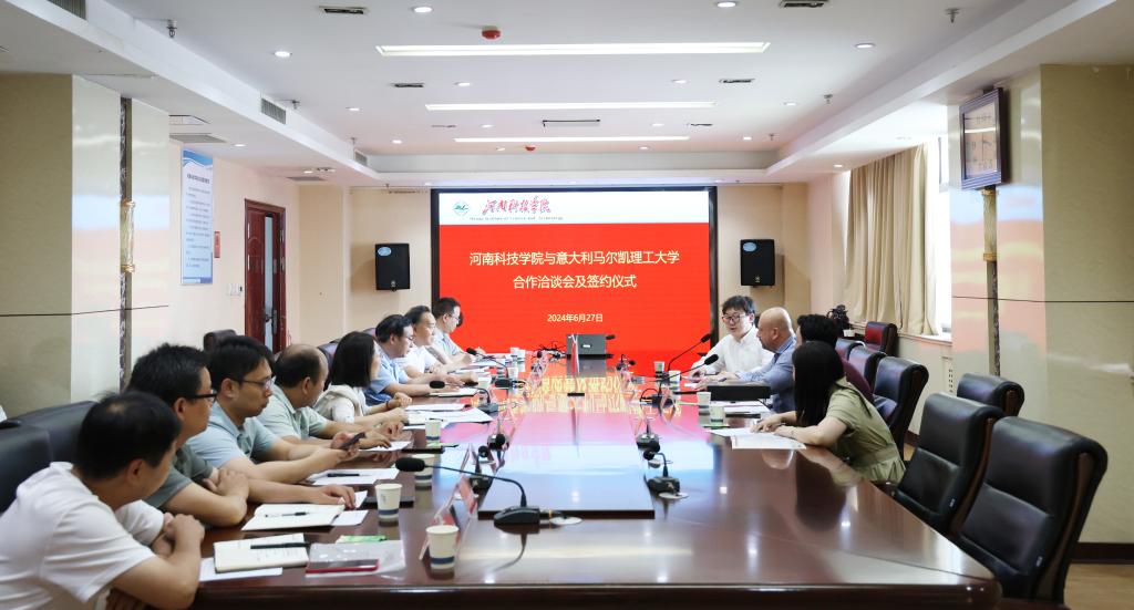 6月27日下午,我校在办公楼901会议室与意大利马尔凯理工大学洽谈合作并签订合作备忘录。意大利马尔凯理工大学中国事务负责人Dario Grandoni、中国事务代表宋元,ITCORE集团董事长Silvano Trapella、河南农业大学意大利语中心办公室主任张亚慧、我校副校长刘全永出席。我校教务处、国际交流与合作处与农学院、生命科学学院、经济与管理学院、机电学院、食品学院、园艺园林学院、计算机科学与技术学院相关负责人参加。