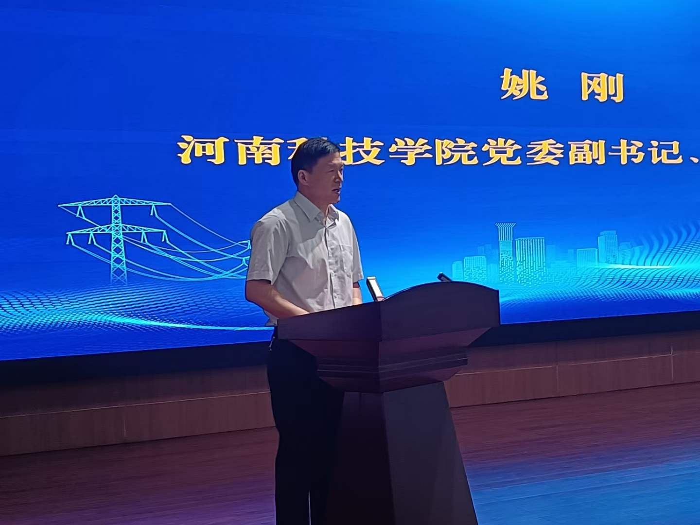 7月14日,由我校机电学院协办的绿色智慧能源暨数智化配电装备技术交流会在新乡市召开,新乡市委常委、统战部部长祁文华,校党委副书记、工会主席姚刚出席大会并致辞。交流会专家论坛环节由机电学院负责人主持。