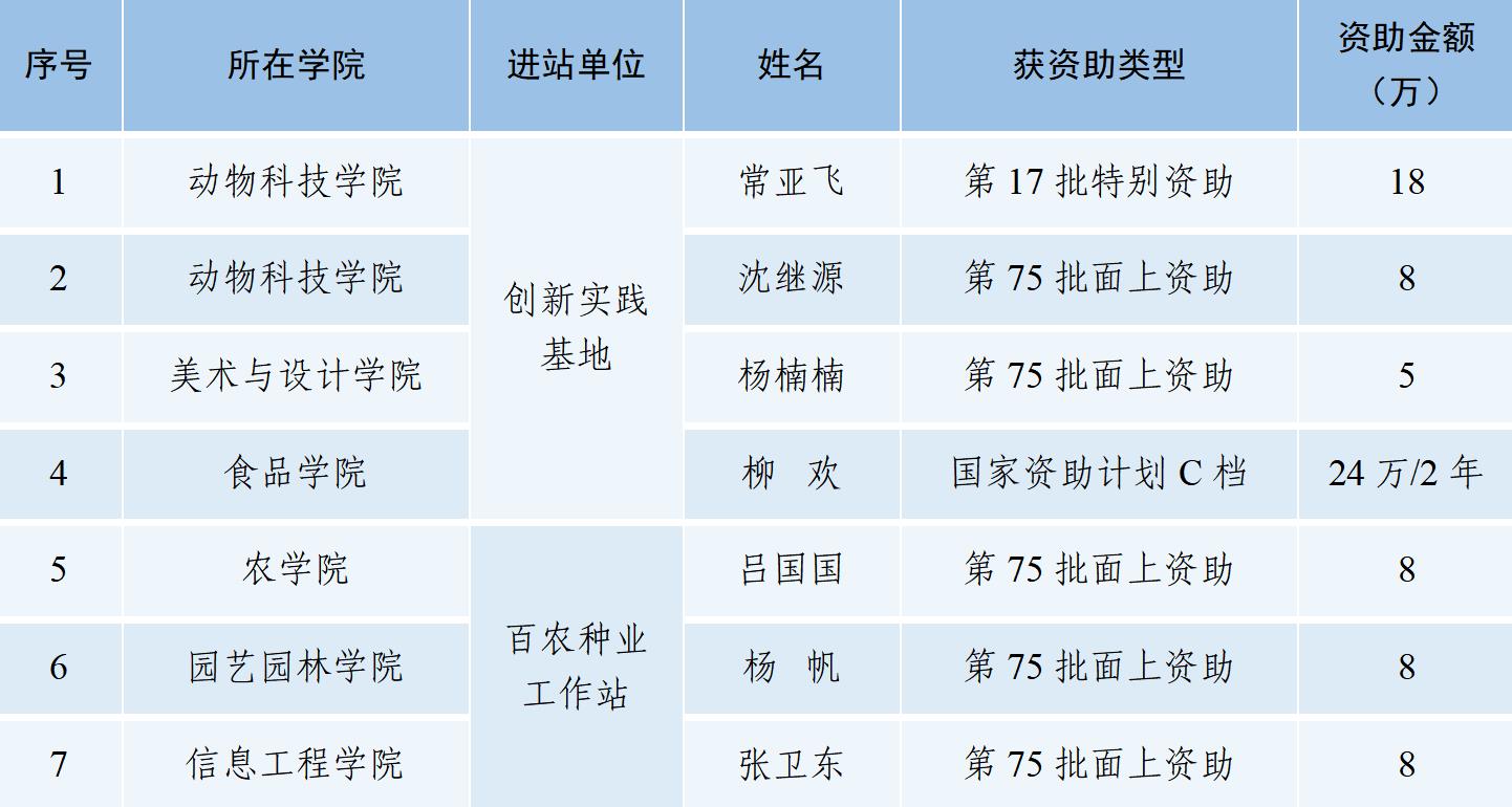 近日,中国博士后科学基金会公布了2024年度中国博士后科学基金资助名单。我校博士后创新实践基地和百农种业博士后科研工作站共7位博士后研究人员成功获得资助,经费总额达79万元,获批数量和总金额再创历史新高,并在国家资助博士后研究人员计划方面实现了突破。