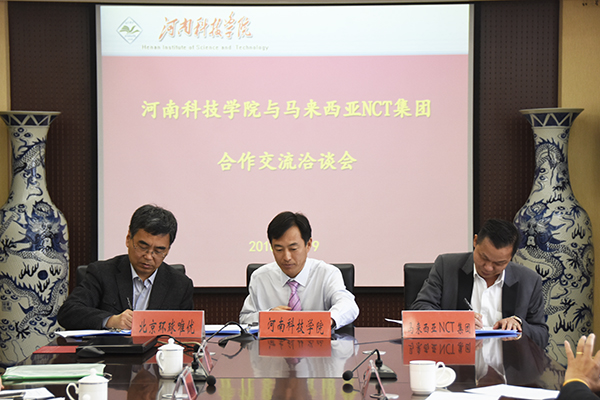 在行政楼901会议室,副校长王霞主持召开河南科技学院与马来西亚NCT集团合作交流洽谈会。校长李成伟出席并致词。他对拿督斯里叶银才一行的到来表示热烈欢迎,就我校学科优势、科研成果、人才培养等情况进行了介绍,就我校服务国家“一带一路”发展倡议所开展的工作进行了说明。拿督斯里叶银才介绍了马来西亚NCT集团的发展历程、投资领域、项目开发等基本情况,并表达了与我校开展教育、科研方面合作的意愿。随后,双方在亲切友好的气氛中进行了洽谈,就深度合作办学、科研合作等达成意向并签署了相关协议。校长办公室、发展规划处、教务处、研究生处、招生就业处、国际交流处、财务处、基建处等部门负责人及马来西亚项目助理参加了洽谈会。