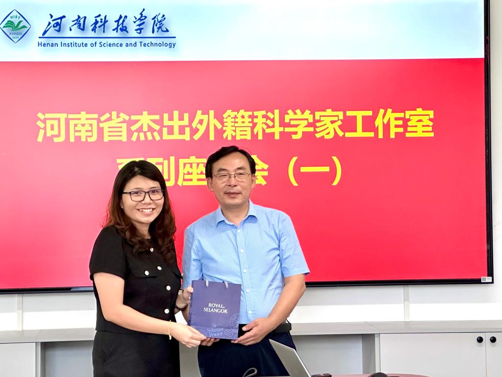 外籍科学家对到我校交流学习表示感谢,并一致表示将竭尽全力地为我校的科研合作和人才培养贡献力量,并期待与我校师生进行深入的学术和文化交流,为相关学科建设和学生培养做出应有的贡献。期间,雷丽鄄博士向我校赠送礼物,表达了对我校的感谢之情。