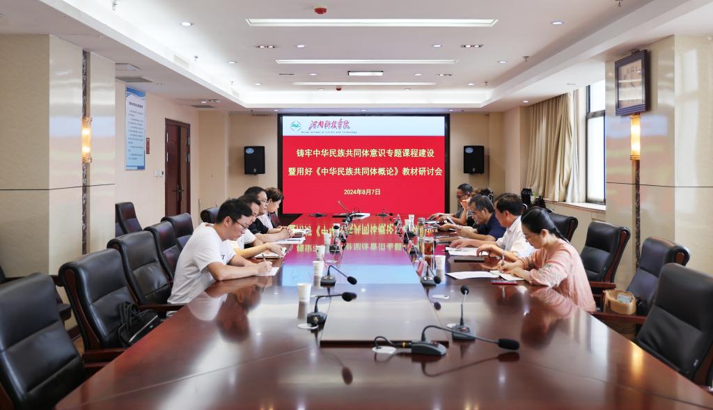 会议学习传达了《中共河南省委教育工委办公室、河南省民族宗教委办公室关于用好<中华民族共同体概论>教材的通知》(豫教工委办〔2024〕22号)文件精神。与会人员围绕铸牢中华民族共同体意识专题课程建设和学好讲好用好《概论》教材作交流发言,重点就《概论》课程开设的教学条件、师资力量、教学安排等进行了认真分析和热烈讨论。