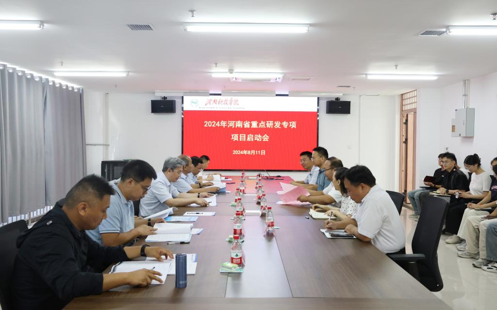 8月11日上午,由河南科技学院人工智能学院牵头承担的2024年度河南省重点研发专项“大豆玉米带状复合种植模式下的自动收割系统关键技术研发及示范”项目启动会在我校召开。苏州大学孙立宁院士、上海大学王曰英研究员、哈尔滨工业大学(威海)张盛平教授、华中农业大学万虎教授、华中农业大学郑金水教授、郑州大学程显教授、河南科技大学金鑫教授等7位专家,河南省科学技术厅现代农业农村科技处处长李永恩出席会议。
