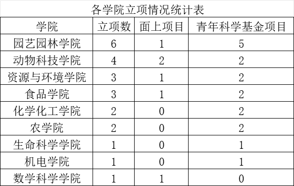 从项目类别上看,面上项目6项,直接经费294万元。青年科学基金项目17项,直接经费510万元。青年科学基金立项数增长55%,为青年教师科研发展奠定良好基础。从学科分布上看,生命科学部17项,化学科学部2项,工程与材料科学部2项,数理科学部和地球科学部分别为1项,充分体现我校在生命科学领域的学科优势。