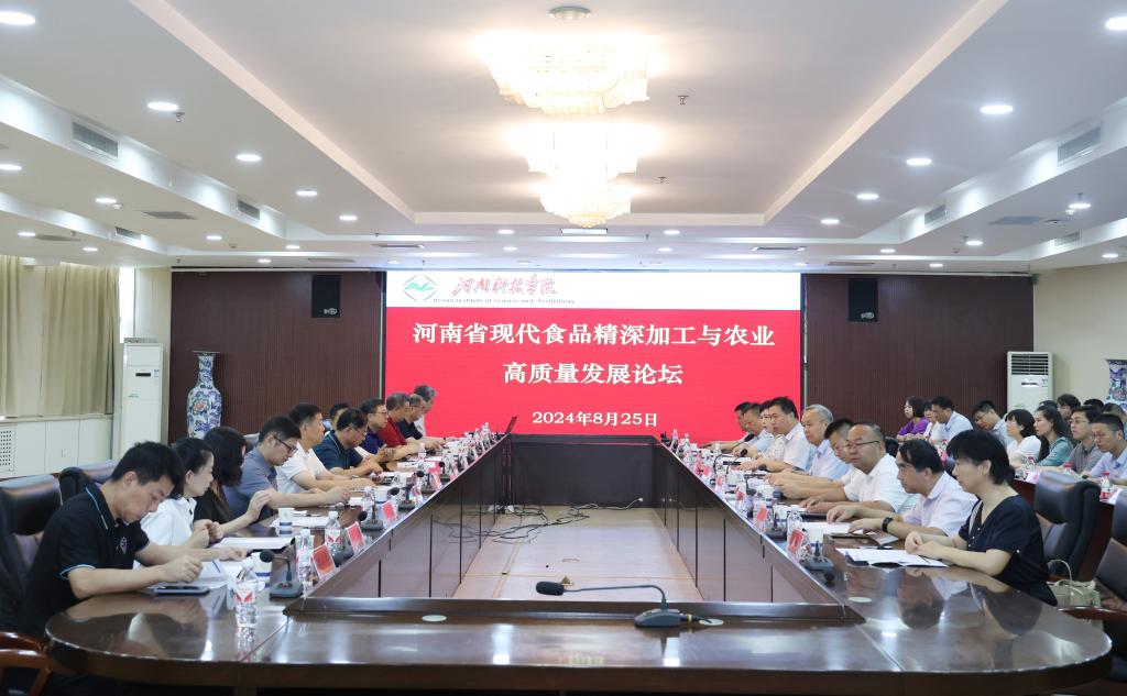8月24日-25日,河南省现代食品精深加工与农业高质量发展论坛在我校举办。来自中国科学院大学、中国农业大学、河北农业大学、江苏大学、湖南省农业科学院、中国农业科学院、华中农业大学、上海海洋大学、扬州大学、福建农林大学、南京农业大学等多家单位的专家学者齐聚一堂,共同探讨现代食品精深加工与农业高质量发展的新路径。河南省科学技术厅现代农业农村科技处副处长、三级调研员徐志华,河南科技学院党委书记宋亚伟、副校长丁轲出席论坛,科技处负责人、食品学院和农学院领导班子及师生代表参加了本次论坛。