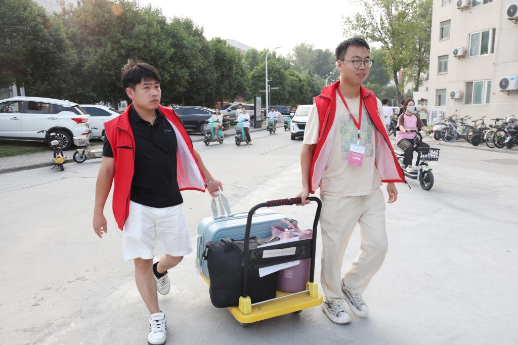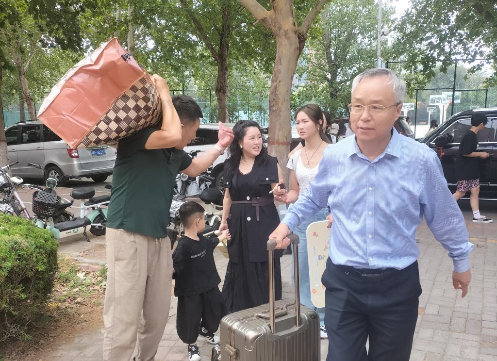 校党委书记宋亚伟为学生搬运行李