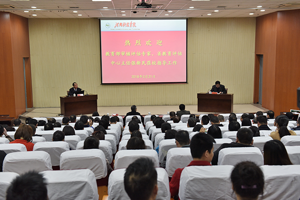 为扎实推进我校本科教学审核评估各项工作,3月21日下午,我校邀请教育部本科教学评估专家、河南省教育评估中心副主任张新民教授作专题报告。在校校领导宋亚伟、冯启高、贺杰、王霞出席了报告会,各职能部门负责人和教学单位领导班子成员、系主任(副主任)、团委书记、教学秘书、教务员以及校评建办全体人员、各项目组有关人员参加了报告会。