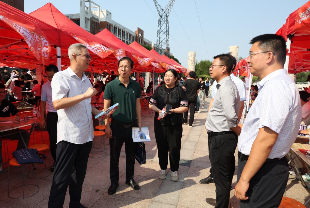 9月14日,由中国教育在线主办,我校承办的2025年全国研究生招生宣传现场咨询会(新乡站)在学校黉表广场举行。副校长马金友到现场指导工作,研究生处负责人陪同。来自华南农业大学、山东农业大学、北京联合大学、西安工程大学、湘潭大学、江汉大学、河南师范大学、河南理工大学等省内外20所高校研究生院代表参加了咨询会,我校所有研究生招生学院也到会开展宣讲,驻新高校大量学生到现场进行了咨询。