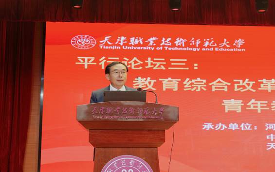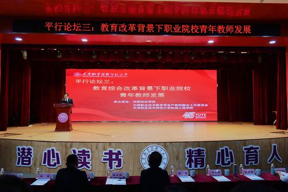 9月21日下午,由中国职业技术教育学会(以下简称学会)主办,河南科技学院、中国职业技术教育学会产教科融合工作委员会、天津职业技术师范大学机械工程学院联合承办的“第二届全国职业院校青年教师发展研讨会暨天津职业技术师范大学建校45周年改革发展大会平行论坛三——教育综合改革背景下职业院校青年教师发展”在天津职业技术师范大学成功举办。中国职业技术教育学会副会长、产教科融合工作委员会主任李平,我校副校长刘全永,天津职业技术师范大学副校长蔡玉俊,职教师资专业委员会副主任委员、华东师范大学教育学部副主任匡瑛出席会议。来自普通高等院校、高职院校、相关企业的各界专家学者200余名代表参加了会议。
