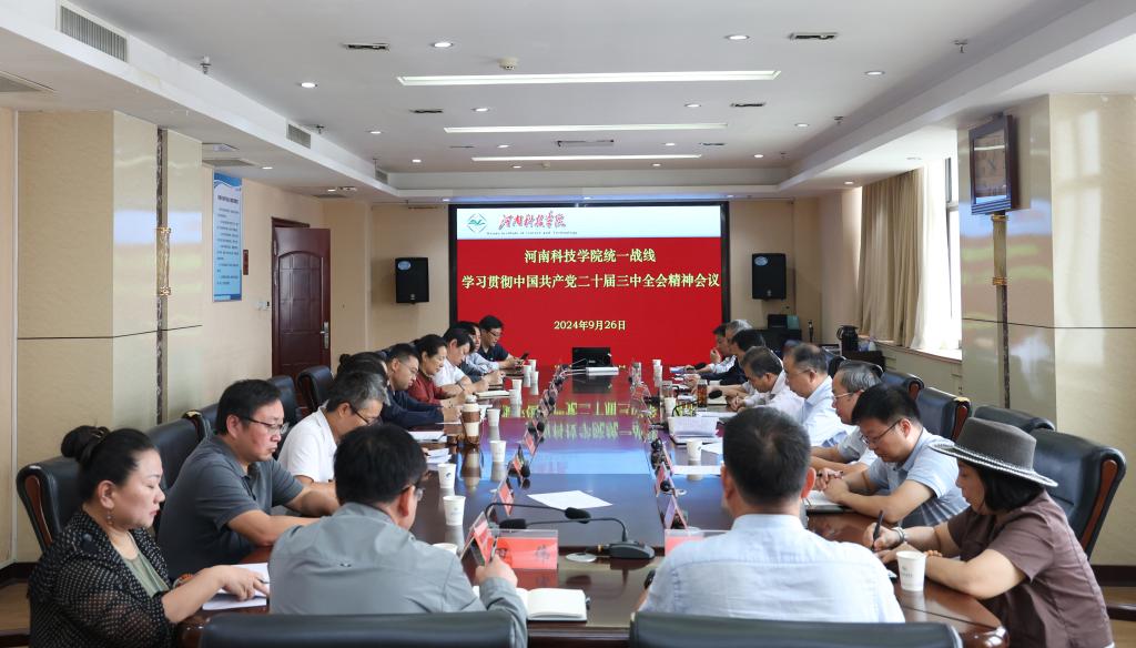 9月26日,我校统一战线学习贯彻中国共产党二十届三中全会精神会议在办公楼901会议室召开。校党委副书记王庆兵出席会议并讲话。党委宣传部、党委统战部负责人,各民主党派、统战团体负责人,无党派人士、留学归国人员代表,各级政协委员代表等参加会议。