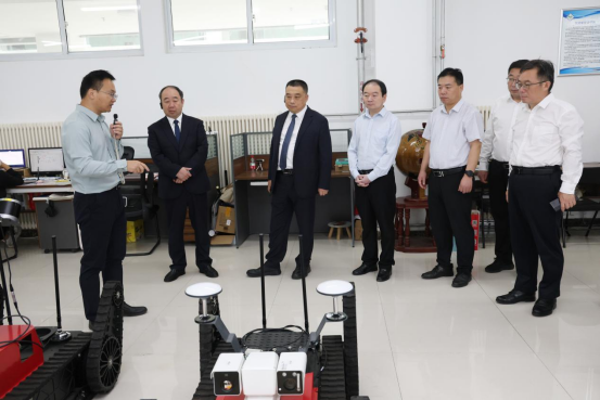 会前,张智广、曹治年等一行参观了杂交小麦工程技术研究中心、校史馆、人工智能学院智能农业机器人研发中心和百泉现代农业研究院。