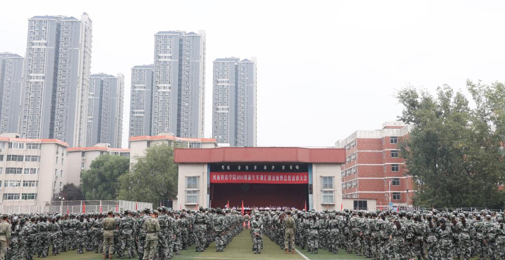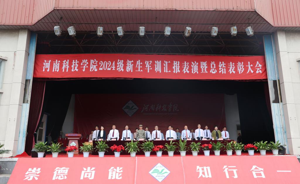 金风秋色溢校园,丹桂飘香满科院。9月29日上午,我校2024级新生军训汇报表演暨总结表彰大会在西区田径运动场举行。校党委副书记王庆兵、副校长刘全永、32145部队中校教导员刘波出席大会。各相关职能部门负责人、各教学学院负责人和辅导员、全体帮训教官和2024级新生参加了大会。大会由校长办公室负责人主持。