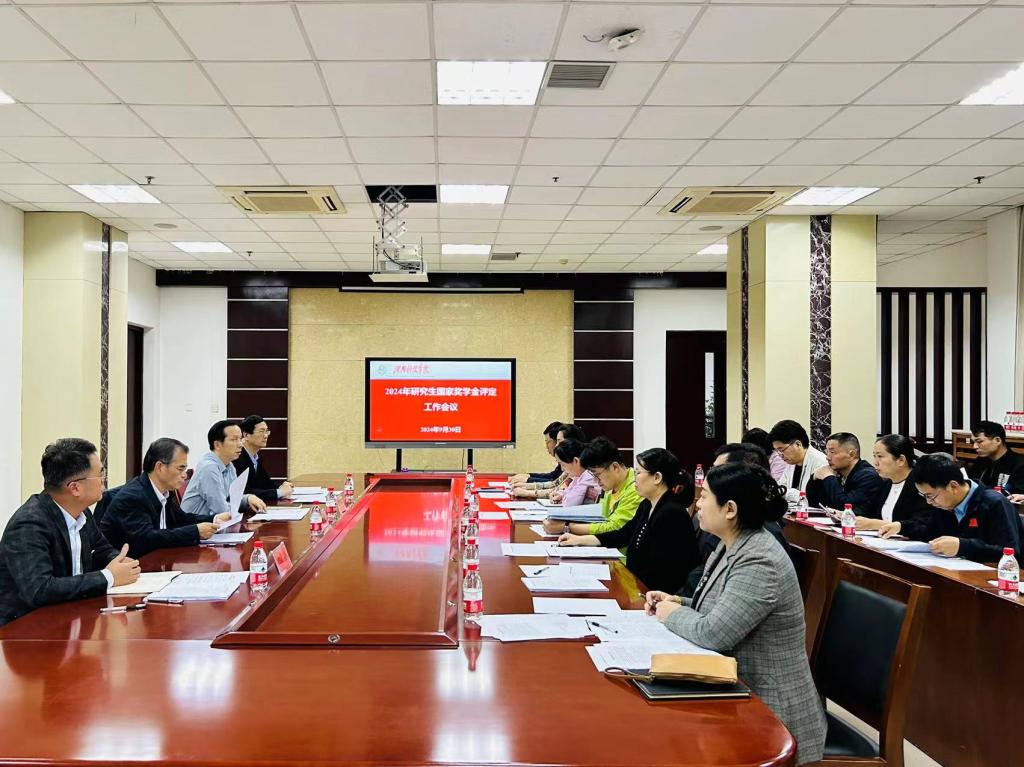 为切实做好2024年研究生国家奖学金评定工作,充分发挥国家奖学金的示范引领作用,9月30日下午,我校在图书馆一楼会议室召开2024年研究生国家奖学金评定工作会议。校党委副书记王庆兵出席会议,各学院主管研究生教育工作的副院长、副书记等担任评委。会议由研究生处、党委研究生工作部负责人主持。