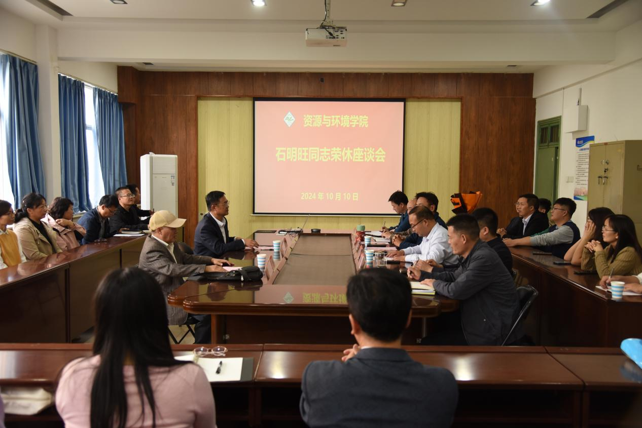 岁月峥嵘如歌,教育芳华不朽。10月10日下午,资源与环境学院在实验楼E307会议室举办了石明旺教授荣休仪式,校纪委书记、监察专员贺杰出席仪式,学院党政领导班子及各教研室教师代表参加了荣休仪式。仪式由学院负责人主持。