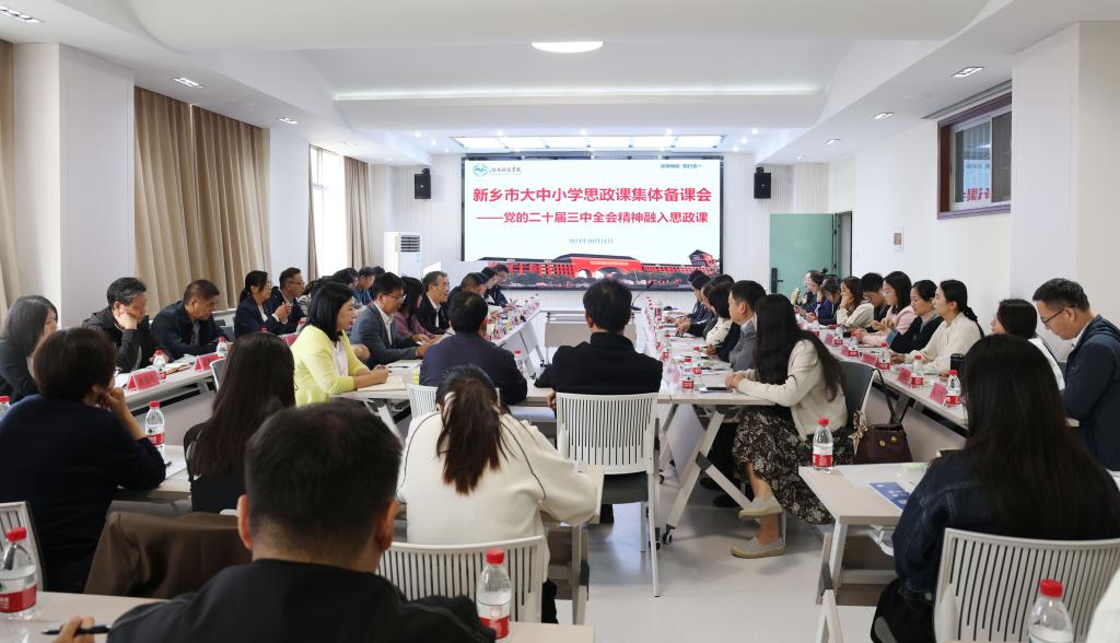 为推进党的二十届三中全会精神融入思政课,坚持思政课建设与党的创新理论武装同步推进,推动思政课内涵式发展,10月14日上午,新乡市大中小学思政课集体备课会在我校举办。来自新乡市教育系统负责思想政治教育的工作者以及大中小学思政课教师代表等70余人参加集体备课会。河南科技学院党委副书记王庆兵、新乡市教育局四级调研员余道平出席会议。