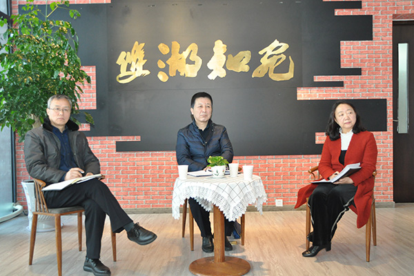 校党委书记周志远(中)、党委副书记宋亚伟(左)、副校长刘莉莉(右)做客双湖知苑