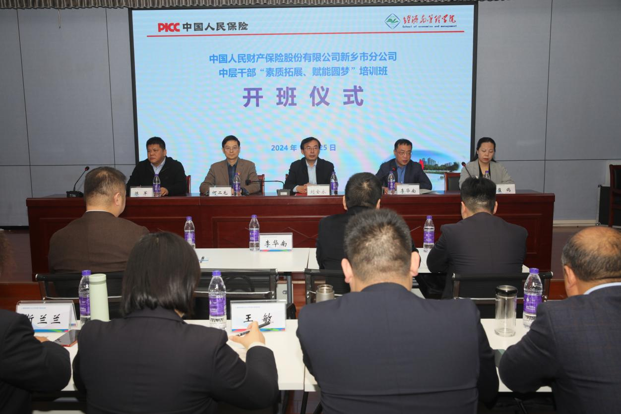 10月25日上午,由河南科技学院经济与管理学院承办的中国人民财产保险股份有限公司新乡市分公司中层干部素质拓展培训班在我校学术交流中心举行开班典礼。来自中国人民财产保险股份有限公司新乡市分公司中层干部70余人参加培训。副校长刘全永、中国人民财产保险股份有限公司新乡市分公司党组书记、总经理李华南,继续教育学院相关负责人、经济与管理学院主要负责人和全体学员参加开班典礼。开班典礼由经济与管理学院负责人主持。
