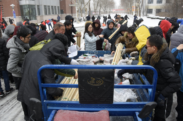 另外,校团委也发动各学院团委和大学生志愿者对校园积雪进行了集中清扫。