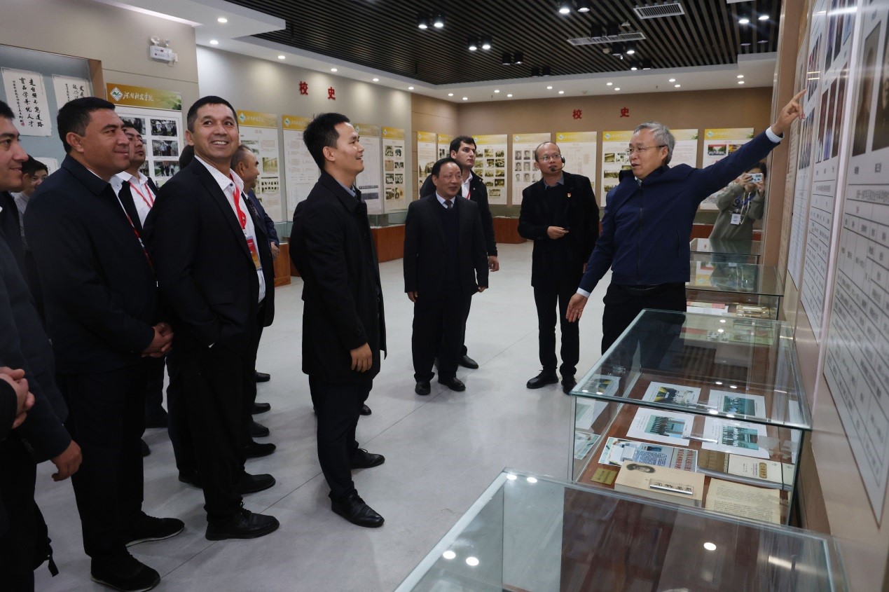 宋亚伟对国际培训班学员的到来表示欢迎。他表示,随着国家“一带一路”战略的不断推进,跨国之间交流不断增强。近年来,河南科技学院充分发挥自身农科优势,通过国际学院、国际培训班、跨国企业高管大讲堂等多种方式,推进国际交流与合作,尤其是在棉花、玉米品种选育推广方面,与中亚国家深入合作,共同推进农业领域的高质量发展。在校史馆,宋亚伟向培训班学员介绍了我校农业科研工作者,扎根中原,克服困难,攻克农业科研生产中的重大技术难题的感人事迹,诠释了我校的“百农精神”内涵。