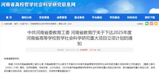 河南省高等学校哲学社会科学研究重大项目的设立,旨在集中优势资源,加快构建中国特色哲学社会科学,充分发挥高校哲学社会科学的学科优势和人才优势,推动我省高校哲学社会科学高质量发展。我校将继续聚焦国家和河南省的发展战略需求,充分挖掘社会科学研究的潜力,为推动区域经济高质量发展,为推进中国式现代化河南实践提供理论支持和智力支撑。
