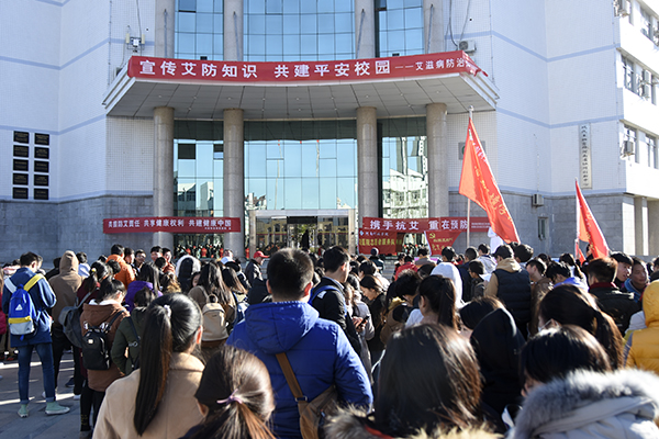 校医院联合学生处、新乡市红旗区疾病预防控制中心,在我校零号楼前举行了大型“宣传艾防知识,共建平安校园——艾滋病防治知识进校园”活动。活动中,大家了解了艾滋病的危害、传播途径以及大学生预防等知识,并在“携手抗艾,重在预防”和“共担防艾责任,共享健康权利,共建健康中国”大型横幅上进行了签名。活动现场还为广大青年学生发放了宣传品和纪念品,勉励同学们树立正确的人生态度,学会自我保护,养成良好的行为习惯和生活方式,远离艾滋,为建设平安校园而努力。