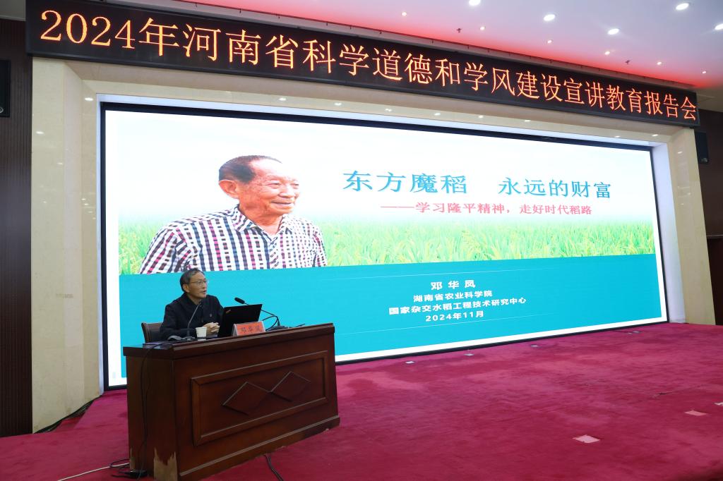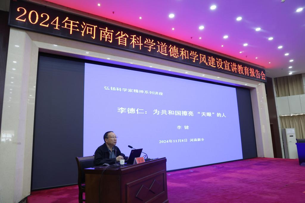 为深入学习贯彻党的二十大精神,全面落实习近平总书记关于弘扬科学家精神和加强作风学风建设工作重要指示精神,营造良好科研生态和创新文化氛围,11月8日上午,由河南省科协、省教育厅、省科技厅、省科学院、省农科院、省社科院、省国防科工局、省医学科学院联合主办,省老科协、新乡市科协和我校共同承办的2024年河南省科学道德和学风建设宣讲教育报告会在我校举办。