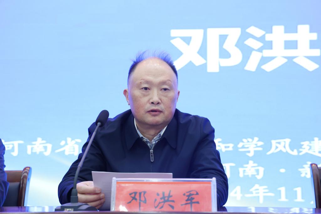 邓洪军在致辞中代表省科协向关心和支持我省科学道德和学风建设工作的各位专家、领导和我校师生表示敬意和感谢。他指出,科学成就离不开精神支撑,加强科学道德和学风建设是推动科技事业健康发展、建设国家创新高地和重要人才中心的基础工程,是实现高水平科技自立自强、建设科技强省的必然要求。