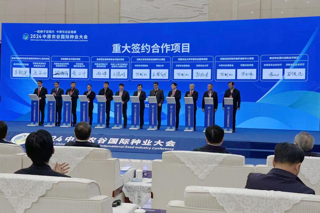 我校党委书记宋亚伟应邀出席开幕式,并代表学校与中原农谷管委会签订作物学创新中心共建协议。这一重要举措标志着我校在深度融入中原农谷建设进程中迈出了坚实且关键的一步。副校长胡铁柱出席种业发展论坛,同与会专家学者就当前种业创新面临的机遇与挑战进行深度交流。