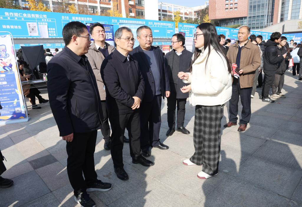 为落实河南省教育厅关于就业服务的工作要求,拓宽毕业生就业渠道,扎实推进毕业生高质量就业,11月21日上午,河南科技学院“豫荐未来·青春起航”2025届毕业生秋招季校园招聘经管类、教育类专场招聘会在校启智广场成功举行。校党委副书记王庆兵到现场指导工作,党委宣传部、学生处、就业创业指导中心、各相关学院负责人及2025届毕业生参加。