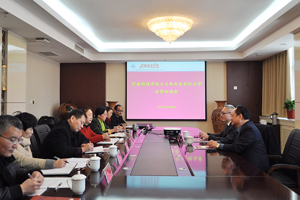 12月6日下午,马来西亚世纪大学研究生管理中心副主任刘国庆一行2人应邀来校访问。我校在行政楼1111会议室举行了合作洽谈会。副校长刘莉莉出席会议,教务处、研究生处、国际交流处、财务处、高等职业技术学院相关单位负责人参加了会议。