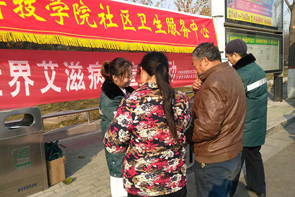 校医院工作人员为新乡市民讲解防控艾滋病知识