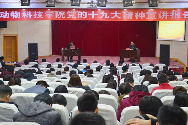 校十九大精神宣讲团成员尤太生为动物科技学院宣讲十九大精神
