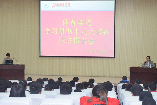 11月23日下午和11月22日下午,马克思主义教育学院青年教师、十九大精神宣讲团成员赵萌分别应邀为服装学院、体育学院做十九大辅导报告。服装学院师生代表和体育学院师生代表分别参加了报告会。