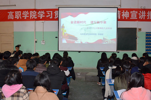 校十九大精神宣讲团成员李修超、刘中元为高职学院宣讲十九大精神
