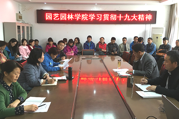 11月9日下午,园艺园林学院党委书记、校十九大精神宣讲团成员冀红举,在学院三楼会议室B312为全院教职工宣讲十九大精神。
