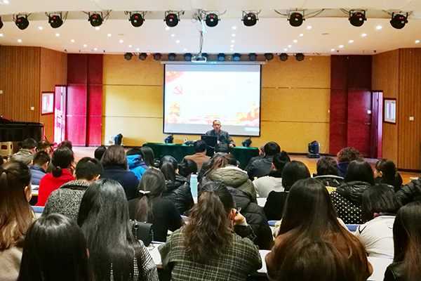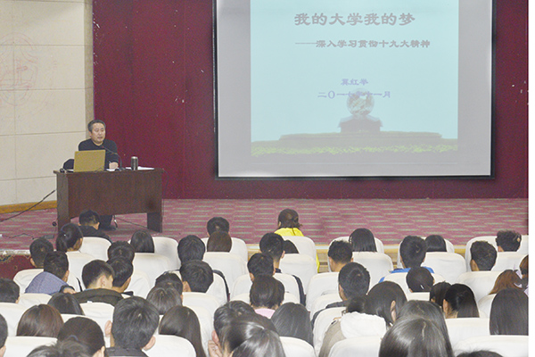 11月21日下午,冀红举在图教201为学院200余名学生代表作题为《我的大学我的梦——深入学习贯彻十九大精神》的报告。