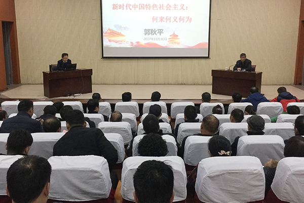 郭秋平主任紧紧围绕“怎么看、怎么样、怎么办”三个方面,从“辩证地看——现实的飞跃、联系地看——世界在观望在等待、历史地看——历史性发展必然之路、长远地看—人民和时代在呼唤”等角度阐述了“怎么看——新时代何来”;从“强起来、大起来、好起来、拼起来、领起来”等方面讲明了“怎么样——新时代何义”;结合国内国际政治经济发展形势和十九大提出的新目标告诉了“面对新时代,我们该怎么办——新时代何为”。报告通篇彰显出习近平新时代中国特色社会主义思想精髓。