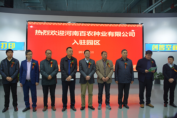 11月28日上午,我校优质企业、河南百农种业有限公司入驻国家863新乡科技产业园仪式在产业园区举行。副校长何松林出席仪式,红旗区委常委、常务副区长,新东区管委会常务副主任,我校实业开发总公司等单位负责人、来宾及员工50余人参加了仪式。