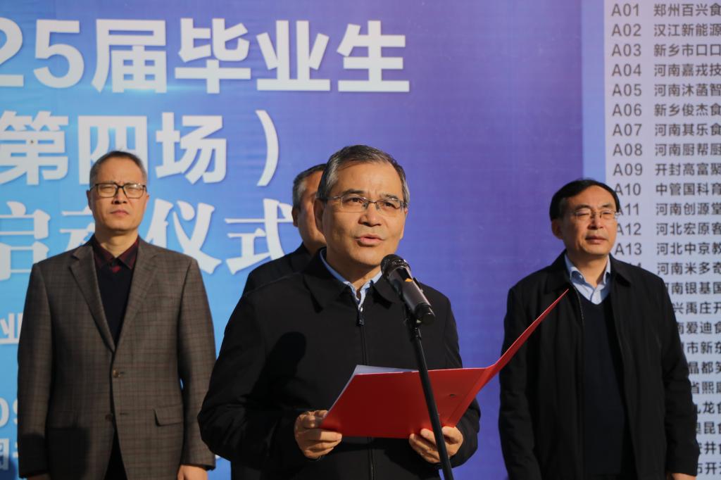 12月6日上午,“豫荐未来·青春启航”校园招聘会暨食品文化月启动仪式在启智广场开幕。校党委副书记王庆兵、副校长刘全永出席仪式。党委宣传部、教务处、学生处、校团委、食品学院、新乡市市场监督管理局食品药品检验所主要负责人及师生代表1000余人参加了此次活动。活动由食品学院负责人主持。