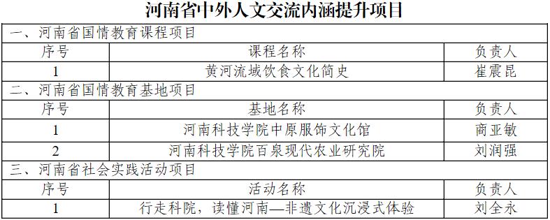 宋亚伟负责的《课程思政引领讲好中国故事研究》获河南省国际中文教育重大项目,旨在推动思政化教育、文化传播、国际形象提升及人文交流。刘全永的《行走科院,读懂河南》获社会实践项目,助力非遗传承、文化自信及教育与社会实践结合。刘润强和商亚敏分别负责的现代农业研究院和中原服饰文化馆获河南省国情教育基地项目,深化国情教育、文化传承与科技转化。张东旭的《综合汉语》课程及研学之旅项目获批省级优质国际化课程及实践活动,提升汉语教学质量、国际化水平及文化传播。侯冬梅的《留学生沉浸式汉语教学环境创设》获一般项目,优化教学环境、促进理论与实践结合。崔震昆的《黄河流域饮食文化简史》获国情教育课程项目,传承黄河文化、丰富教育内容。