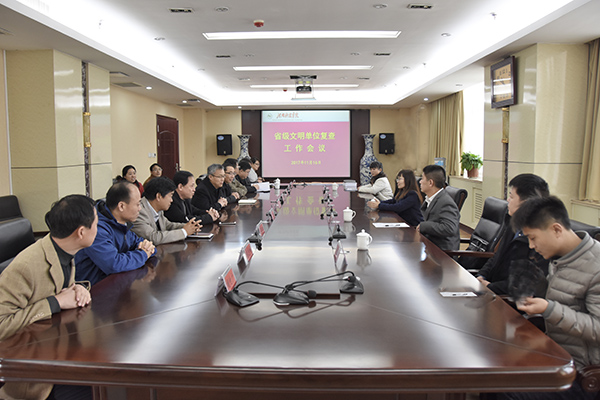 11月16日上午,省级文明单位复查组一行5人莅临我校,对我校文明创建工作进行年度复查。复查工作会议在办公楼901会议室举行。校党委副书记宋亚伟出席会议,党委宣传部、学工部、校团委、后勤管理处、保卫处、后勤服务集团等单位负责人参加会议。