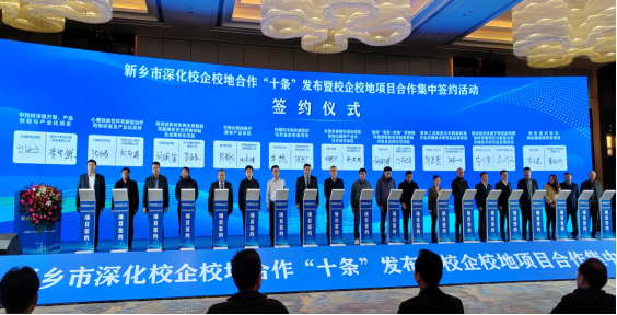 项目签约环节,我校的10项校企合作项目进行了集中签约。签约仪式后,中共新乡市委、新乡市人民政府在会场现场发布了《关于进一步深化校企校地合作的若干措施(试行)》。