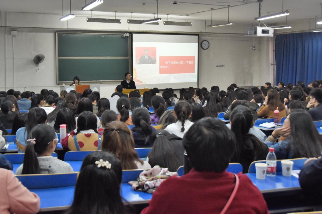 邀请十九大代表走进学生课堂进行宣讲,是我校认真学习宣传贯彻十九大精神的活动之一。作为学生思想政治理论课的主阵地,学校要求马克思主义教育学院把实现十九大精神“三进”工作(“进课堂”“进教材”“进头脑”)作为当前和今后一个时期思想政治理论课教学的中心任务,积极做好理论课教师的全员培训工作,确保课堂教学中全面准确地宣讲十九大精神。马克思主义教育学院及时召开集体备课会,更新教学课件,实现十九大精神进讲稿、进课堂、进学生头脑;以“研究十九大”为重点,邀请专家开展讲座,深入研究新时代、新矛盾、新思想、新征程等重要论断,分不同方向深入学习研究,形成高质量的理论研究成果,确保党的十九大精神全面有机地融入思想政治理论课教学体系,推动十九大精神最及时准确地传递给广大青年学子。