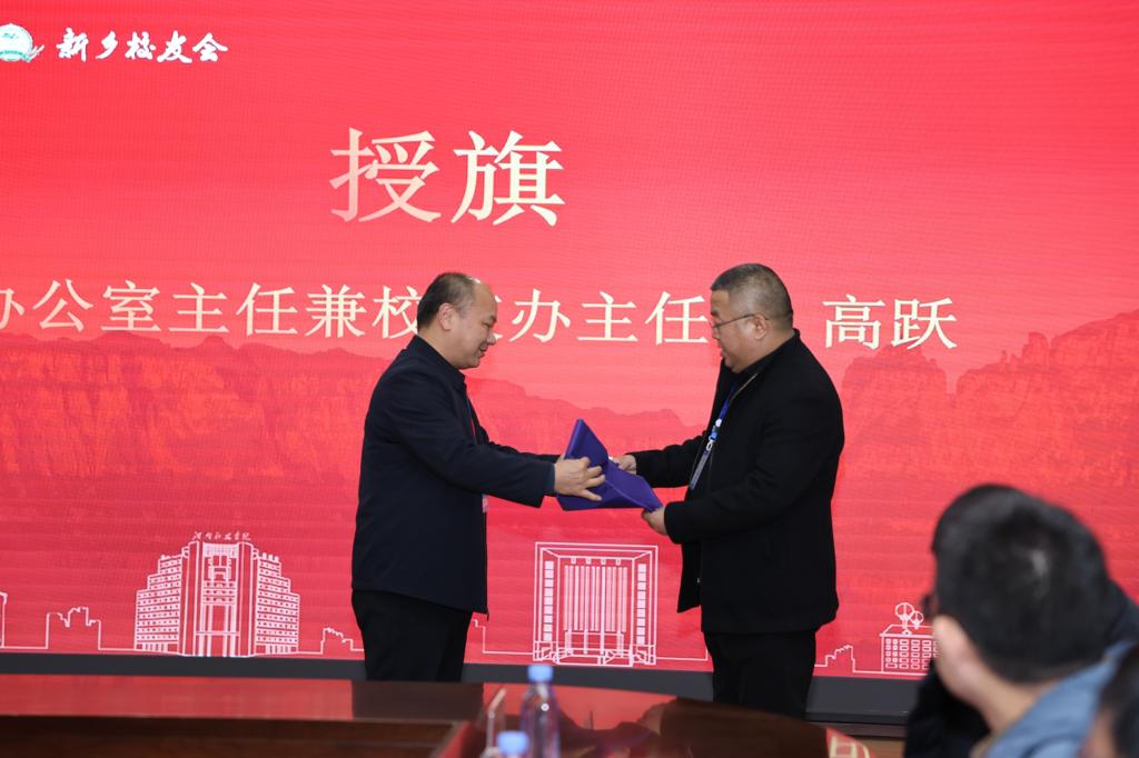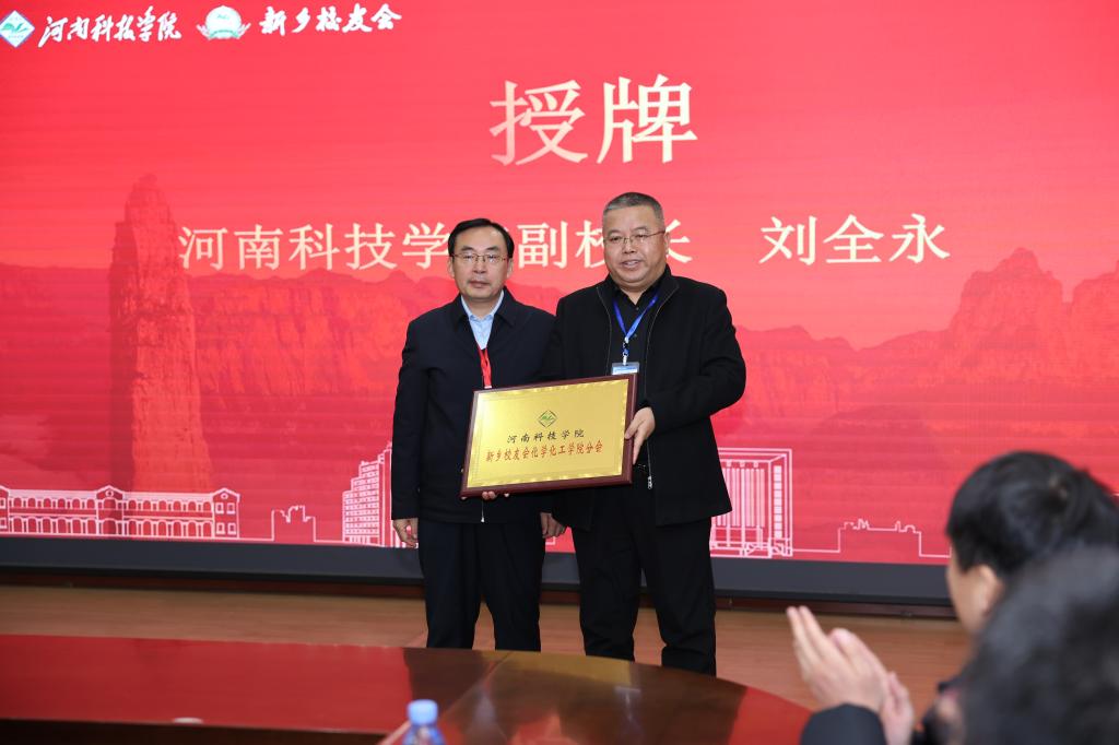 会上,校友会办公室相关负责人宣读了《关于河南科技学院校友会化学化工学院校友分会成立的决定》,大会选举产生了新乡校友会化学化工学院分会第一届会长、副会长、秘书长、副秘书长。刘全永、校友会办公室相关负责人为校友分会授牌、授旗。化学化工学院相关负责人为理事会成员颁发聘书。河南科技学院新乡校友会会长薛水波,洛阳校友会化学化工学院分会会长陈辉和上海校友会会长、化学化工学院分会会长王军鹏作了发言致贺,并向新乡校友会化工分会赠送了纪念品。