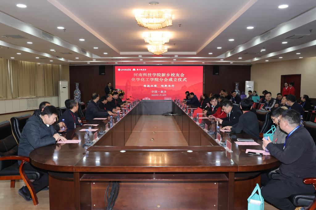 缘起化院,向新而行。1月18日,河南科技学院新乡校友会化学化工学院分会在行政楼206会议室举行成立大会。河南科技学院副校长刘全永出席大会,校长办公室、校友会办公室负责人,新乡、上海、洛阳校友会负责同志,化学化工学院班子成员、教师和校友代表60余人参加大会。会议由化学化工学院负责人主持。