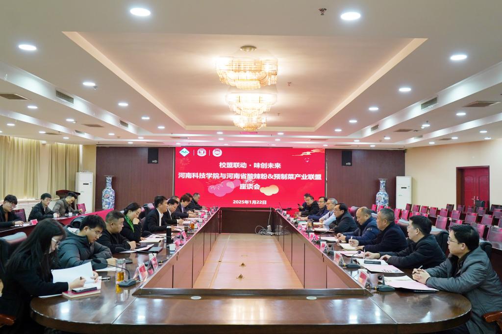 为进一步利用产业资源提升学生就业创业能力、促进产学研深度融合,助力乡村产业发展,1月22日下午,我校与河南省酸辣粉&预制菜产业联盟在行政楼206会议室成功举办“校盟联动·味创未来”主题座谈会。省农业农村厅乡村产业发展处处长曹路、副校长刘全永出席会议,产业联盟秘书处及7家龙头企业代表、我校校长办公室、教务处、学生处、后勤服务中心、继续教育学院、食品学院、国际教育学院负责人参加会议。座谈会由校长办公室负责人主持。