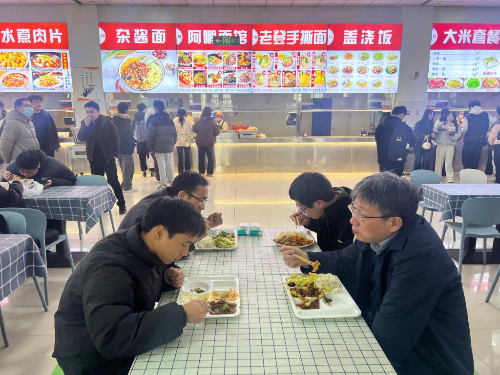 王洪亮自行选购一份饭菜并进行了仔细品尝。在就餐过程中,他又认真听取了同时就餐老师对做好餐饮服务保障工作的意见和建议。