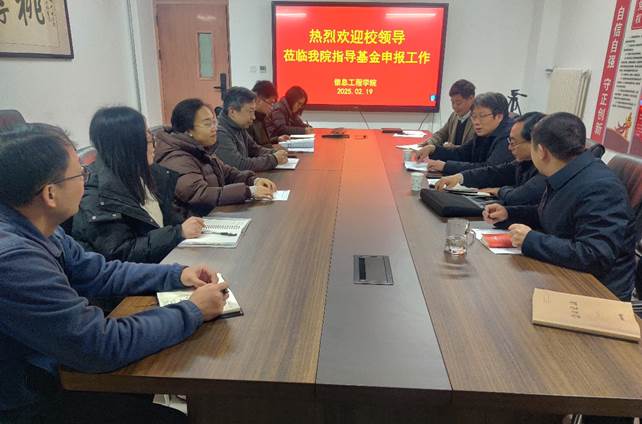 2月19日下午,校长阚云超、副校长刘全永到信息工程学院调研指导2025年度自科基金申报工作。会议在弘文楼404会议室召开,学院申报教师及相关负责人参加了会议。