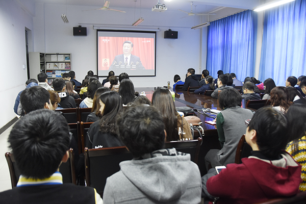 10月18日上午9时,中国共产党第十九次全国代表大会在北京人民大会堂隆重开幕。我校师生热切关注,在行政楼会议室、办公室,各基层党委、党总支会议室、活动室、教研室,学生公寓及餐厅内,师生们满怀期待与激动之情,通过电视、网络收听收看十九大开幕会盛况。在观看现场,一次又一次响起热烈的掌声。